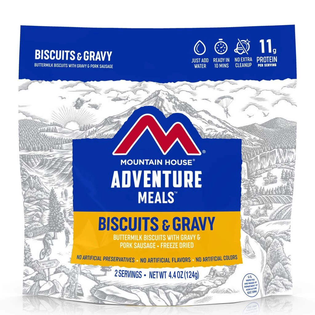 Buttermilk Biscuits: Enriched Unbleached Flour (wheat flour, malted barley flour, niacin [B3], iron, thiamine mononitrate [B1], riboflavin [B2], folic acid [B9]) ? Palm Oil (with mono and diglycerides) ? Buttermilk Powder ? Baking Powder (sodium acid pyrophosphate, sodium bicarbonate, cornstarch, monocalcium phosphate) ? Sugar ? Salt Gravy Mix: Corn Starch ? Sweet Cream Powder ? Buttermilk ? Nonfat Dry Milk ? Cane Sugar ? Yeast Extract ? Sea Salt ? Black Pepper ? Sage ? White Pepper ? Ginger ? Thyme ? Sunflower Oil ? Nutmeg Pork Sausage Crumble: Pork ? Sea Salt ? Cane Sugar ? Spices ? Rosemary Extract ? Chili Pepper